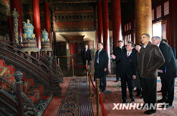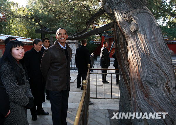 11月17日,正在中國(guó)進(jìn)行國(guó)事訪問的美國(guó)總統(tǒng)奧巴馬參觀北京故宮。新華社記者龐興雷攝