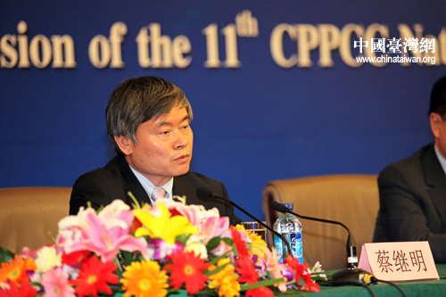 中國(guó)臺(tái)灣網(wǎng)3月5日北京消息 3月5日下午14時(shí)30分,全國(guó)政協(xié)十一屆四次會(huì)議在梅地亞兩會(huì)新聞中心舉行記者會(huì),主題是“政協(xié)委員談協(xié)調(diào)推進(jìn)城鎮(zhèn)化與新農(nóng)村建設(shè)”。全國(guó)政協(xié)委員蔡繼明、王健林、錢克明、李成貴、吳焰出席并回答記者的提問。。▌⒀蟆埼翰〝z影報(bào)道)