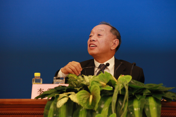 十一屆全國人大四次會議于3月4日(星期五)上午11時在人民大會堂三層金色大廳舉行新聞發(fā)布會,由大會發(fā)言人就會議議程和人大工作相關(guān)的問題回答中外記者的提問。圖為大會發(fā)言人李肇星。吳莼 攝