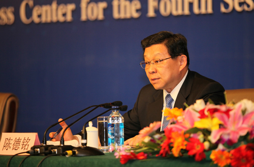 商務(wù)部部長(zhǎng)陳德銘回答記者提問(wèn)。 (記者宋玥璘 劉洋 閆文 攝)