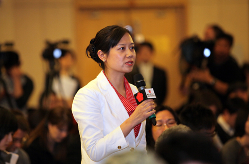 中央電視臺(tái)記者提問(wèn)。(記者宋玥璘 劉洋 閆文 攝)