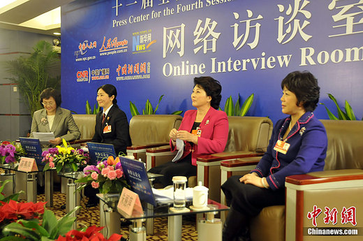 3月8日,十一屆全國人大四次會議新聞中心邀請3位全國人大代表,結(jié)合聽取和審議政府工作報告,就“婦女發(fā)展”與網(wǎng)民進行在線交流。中新網(wǎng)記者 鄧永勝 攝