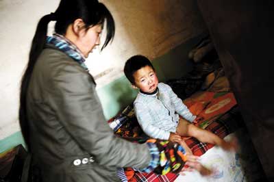 山西,食用三鹿奶粉患有腎病的孩子(資料圖片)。羊城晚報(bào)記者 何奔 攝