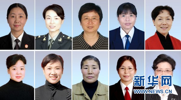 2月28日,為紀(jì)念“三八”國際婦女節(jié),大力表彰宣傳我國當(dāng)代杰出婦女的先進(jìn)事跡,全國婦聯(lián)作出決定,授予陳燕萍等10人全國三八紅旗手標(biāo)兵榮譽(yù)稱號。扎根農(nóng)村法庭十五年,心系群眾、公正辦案的江蘇省靖江市人民法院江陰園區(qū)法庭副庭長陳燕萍(上排左一);新華社發(fā)