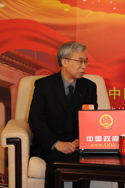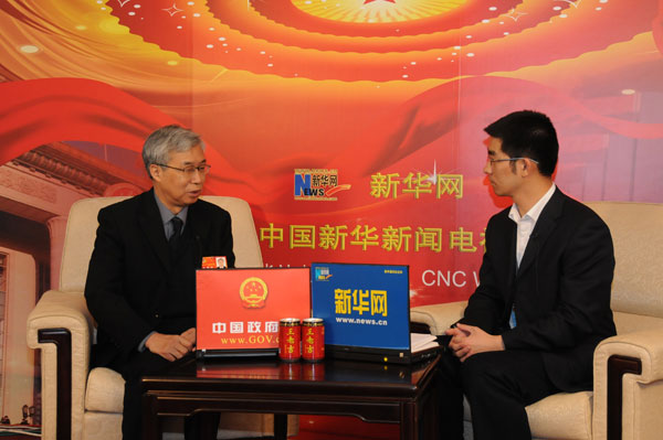 2011年3月9日9時,全國政協(xié)十一屆四次會議舉行第三次全體會議,委員大會發(fā)言。圖為全國政協(xié)委員歐陽鐘燦在訪談間接受新華網、中國政府網現(xiàn)場采訪。他表示,我國液晶顯示產業(yè)一定能后來居上。宋巖 攝