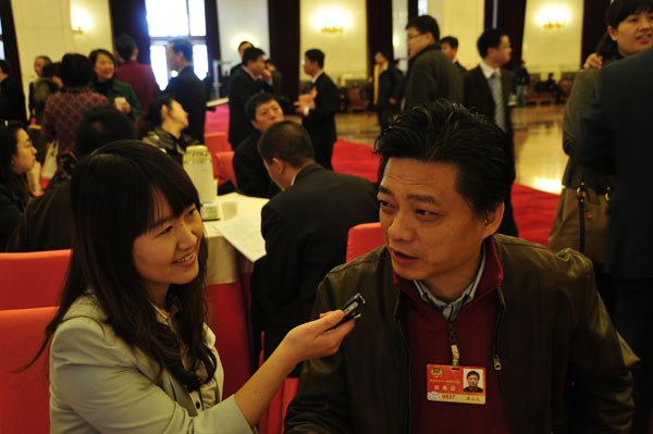3月9日9時(shí),全國(guó)政協(xié)十一屆四次會(huì)議第二次全體會(huì)議在人民大會(huì)堂舉行。圖為全國(guó)政協(xié)委員崔永元接受新華網(wǎng)記者專訪。宋君毅 攝