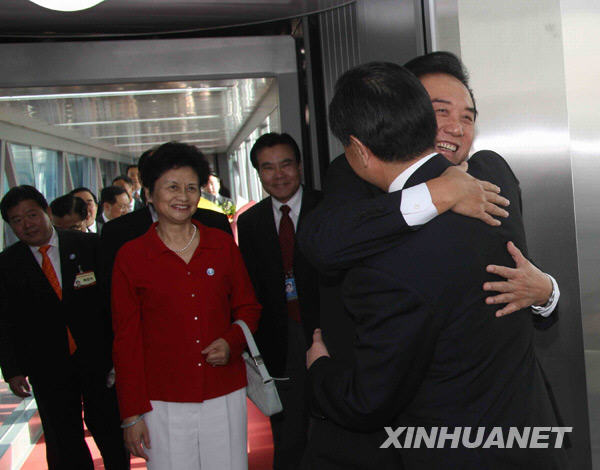 11月7日,海協(xié)會會長陳云林一行結(jié)束訪臺行程,于13時50分許乘機(jī)回到北京。中臺辦、國臺辦主任王毅到機(jī)場迎接。新華社記者 汪永基 攝