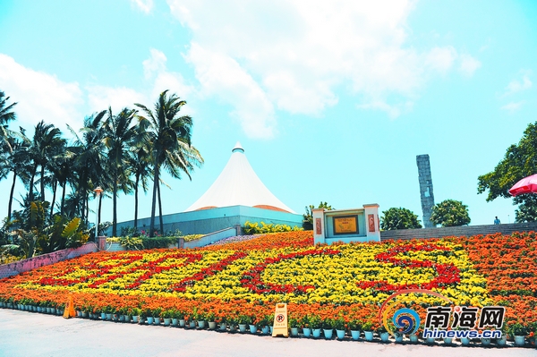 4月10日,三亞亞龍灣中心廣場前的鮮花擺成了﹃ B R IC S ﹄︵金磚國家︶圖案為迎接金磚國家領導人第三次會晤和博鰲亞洲論壇2011年年會的召開,三亞各重點路段,重點場所均裝扮一新。