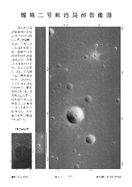 這是嫦娥二號虹灣局部影像圖(成像時間為10月28日)。 11月8日,國家國防科技工業(yè)局首次發(fā)布嫦娥二號月面虹灣局部影像圖。 新華社發(fā)