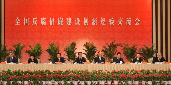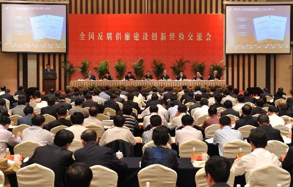 5月18日,中央紀委監(jiān)察部在南京市召開全國反腐倡廉建設創(chuàng)新經(jīng)驗交流會,中共中央政治局常委、中央紀委書記賀國強出席會議并講話! ⌒氯A社記者黃敬文攝