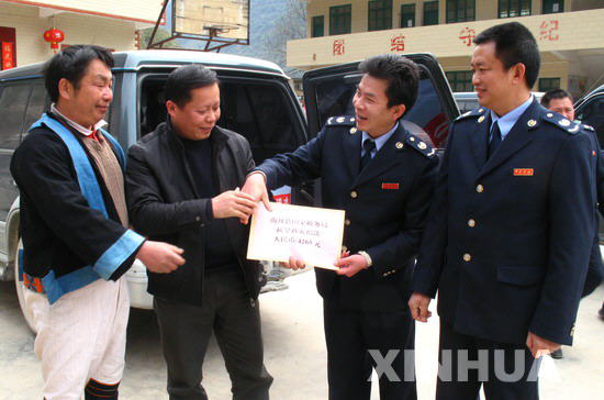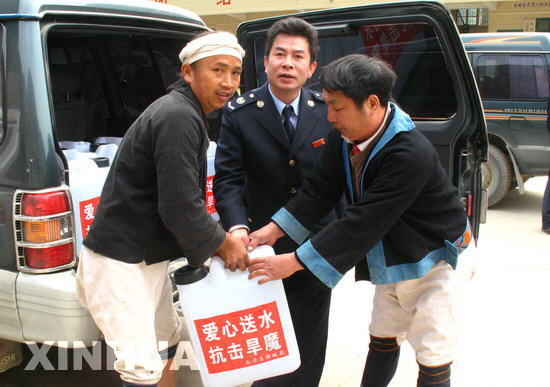 南丹縣國稅局領(lǐng)導(dǎo)給受災(zāi)瑤族同胞運(yùn)水