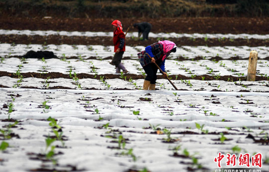 近日,云南旱區(qū)普降雨水,全省各地抓住有利時(shí)機(jī)開(kāi)展大春播種。截至目前,云南省已投入拖拉機(jī)、抽水機(jī)等各類農(nóng)機(jī)具100萬(wàn)臺(tái)套,機(jī)耕機(jī)耙面積1200多萬(wàn)畝,比去年同期增20%,澆灌面積1300萬(wàn)畝,春播面積1208.9萬(wàn)畝。圖為云南曲靖煙農(nóng)正在移栽煙苗。中新社發(fā) 田洪 攝