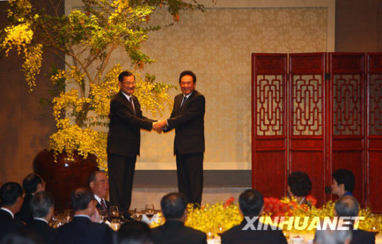 陳云林在致詞時說,人生可能有千百個夢,到臺灣這塊可愛的土地上,和江丙坤董事長進行會談,共同簽署四項協(xié)議,實現(xiàn)了我人生一個最好的夢。為海協(xié)會代表團有這樣一次成功的訪問,在座各位不知付出多少努力和心血,寄托了多少的希望。兩會近半年來共簽署了六項協(xié)議,實現(xiàn)30年來兩岸同胞翹首以盼、兩岸工商界為之奔走的目標。