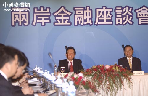兩岸金融座談會(huì)今天上午在臺(tái)北圓山飯店舉行,海協(xié)會(huì)會(huì)長(zhǎng)陳云林與;鶗(huì)董事長(zhǎng)江丙坤出席。中國(guó)臺(tái)灣網(wǎng) 田云鵬攝