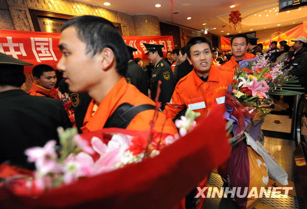 當日,中國國際救援隊圓滿完成海地震后搜救和醫(yī)療救治任務返回北京。新華社記者王建華攝