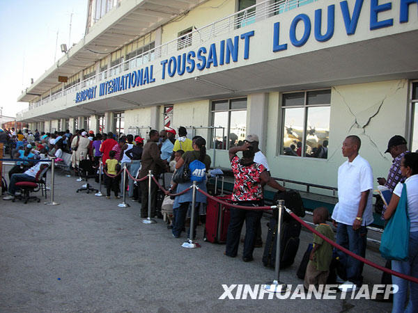 1月17日,人們在海地首都太子港機場排長隊等候乘飛機離開。當(dāng)?shù)貢r間1月12日,海地發(fā)生里氏7.3級地震,造成重大人員傷亡。新華社/法新