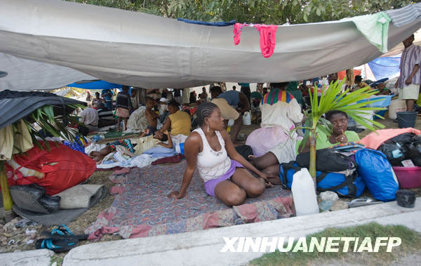 1月20日,在海地太子港,人們住在臨時搭建的帳篷內(nèi)。 海地當?shù)貢r間20日晨6時03分,太子港發(fā)生里氏6.1級地震。這是12日海地發(fā)生里氏7.3級地震以來,震感最為強烈的一次余震。 新華社/法新