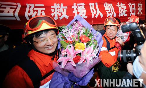 1月27日,救援隊(duì)隊(duì)員抵達(dá)首都國際機(jī)場(chǎng)。當(dāng)日,中國國際救援隊(duì)圓滿完成海地震后搜救和醫(yī)療救治任務(wù)返回北京。 新華社記者王建華攝