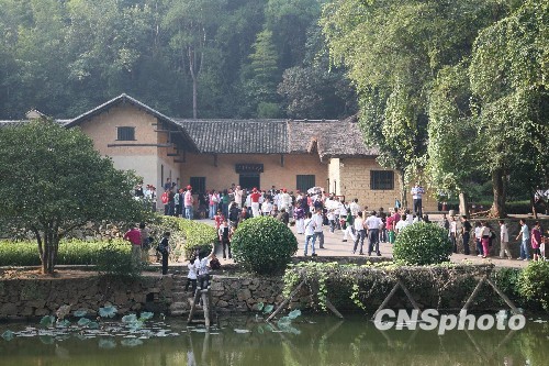 10月1日,新中國(guó)成立60周年之日,前來韶山毛澤東故居參觀的游客絡(luò)繹不絕。 中新社發(fā) 白祖偕 攝