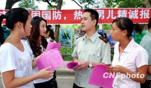 據(jù)總參動員部有關部門領導介紹,今年高校應屆畢業(yè)生人數(shù)約為610萬人,其中已確定為預征對象的近13萬人。我國兵員征集對象主體調整始于2008年。當年6月,總參謀部、總政治部和教育部、公安部、民政部聯(lián)合下發(fā)通知,宣布將征集對象主體從農村青年、城鎮(zhèn)待業(yè)青年調整為全日制高中以上層次各級各類學校應屆畢業(yè)生。當年底,3.9萬余名高校畢業(yè)生攜筆從戎。