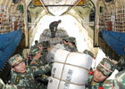 空軍運(yùn)輸機(jī)運(yùn)送救災(zāi)衣被到災(zāi)區(qū)