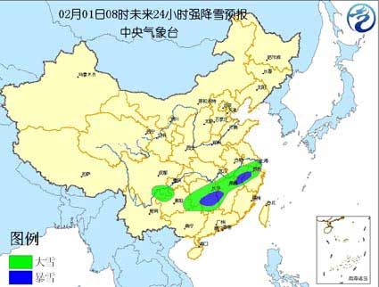 受冷暖空氣的共同影響,預(yù)計(jì)今天白天到夜間,湖南大部、貴州東南部、湖北東南部、安徽南部、江蘇西南部、浙江北部、江西北部以及四川東南部、云南東北部等地有中到大雪,其中,湖南中南部、安徽南部、江西北部、浙江西北部等地的局地有暴雪!