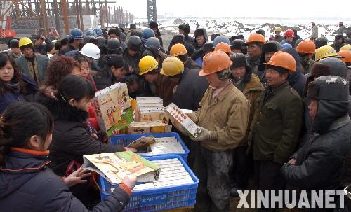 1月26日上午,在河南洛陽一工地上,春節(jié)留守農(nóng)民工紛紛填寫速遞單,準(zhǔn)備把當(dāng)?shù)靥禺a(chǎn)牡丹餅寄給家里人。當(dāng)日,河南省洛陽市為春節(jié)留守農(nóng)民工圓夢行動啟動。由媒體、企業(yè)以及速遞局聯(lián)合組織開展的為春節(jié)留守農(nóng)民工圓夢行動,主要內(nèi)容包括免費提供當(dāng)?shù)靥禺a(chǎn),免費郵寄到家等,為春節(jié)留守農(nóng)民工提供與家人互相交流情感、表達思鄉(xiāng)之情的平臺。 新華社發(fā)(高山岳 攝)