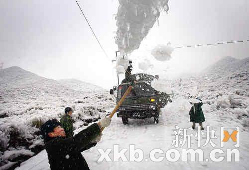 冰封23天缺糧缺物,近萬災(zāi)民生活頻頻告急!昨日的韶關(guān)乳源縣大橋鎮(zhèn),一場(chǎng)聲勢(shì)浩大的救助災(zāi)民行動(dòng)在軍民之間全面展開。為了將近百萬元急需物資送到受災(zāi)最嚴(yán)重的大橋鎮(zhèn)紅云村,本報(bào)記者跟隨救援官兵,沖破4公里冰封道路阻礙,其中的艱辛很難用文字完全描繪出來:4公里的路走了3個(gè)小時(shí)、官兵們雙手凍僵、救援軍車數(shù)次遇險(xiǎn)……當(dāng)救災(zāi)物資順利發(fā)放到災(zāi)民們手中的時(shí)候,災(zāi)區(qū)人民一個(gè)個(gè)都激動(dòng)不已。