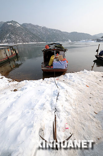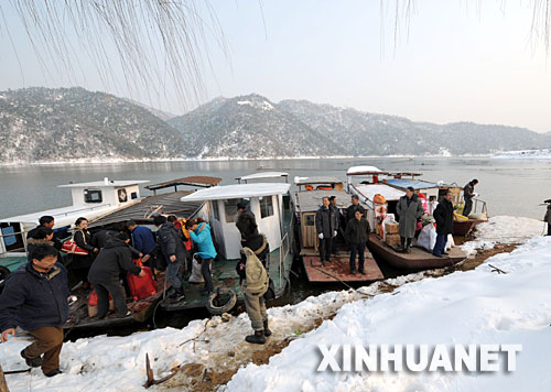 地處大別山區(qū)的安徽霍山縣自1月12日起遭受50年一遇的特大雪災(zāi),山路不通導致許多山區(qū)群眾返鄉(xiāng)和出行受阻。當?shù)卣诖_保安全的情況下,利用佛子嶺水庫的有利條件加強水路客運,臨時增調(diào)十幾條旅游船充當客運船,目前共20多條客運船只日均運輸客流1000人左右。當?shù)卣拖嚓P(guān)部門采取24小時安全監(jiān)控等多項措施確保乘客安全。 新華社記者 陳曄華 攝