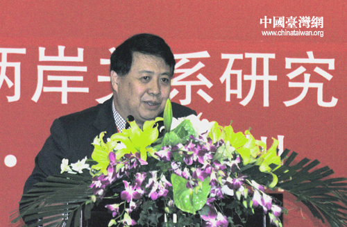 中國人民大學(xué)黃嘉樹教授在兩岸關(guān)系研討會上作大會發(fā)言(中國臺灣網(wǎng) 李杰 攝)
