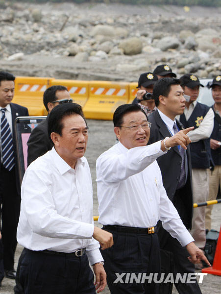12月24日,海協(xié)會(huì)會(huì)長(zhǎng)陳云林(前左)率海協(xié)會(huì)協(xié)商代表團(tuán)部分成員赴南投縣水里鄉(xiāng)新山村,考察“八八水災(zāi)”災(zāi)區(qū)。