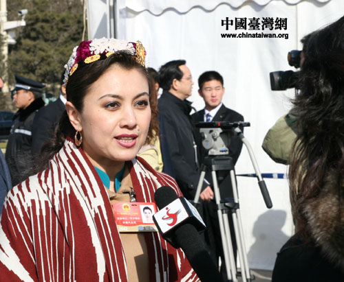 十一屆全國人大二次會(huì)議13日閉幕,圖為少數(shù)民族代表接受媒體采訪。