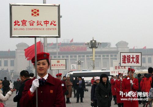 圖為接待處禮儀小姐為委員們指引方向。(中國(guó)臺(tái)灣網(wǎng) 高斯斯 攝)