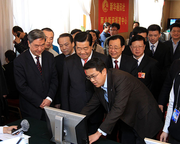 賈慶林看望參加兩會報道的新聞工作者