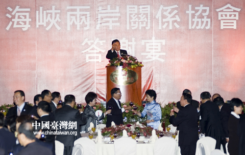11月6日晚,在海協(xié)會為海基會及臺灣各有關(guān)方面舉辦的答謝晚宴上,陳云林動情地說他懷著加強兩岸經(jīng)濟合作,增進兩岸同胞福祉的善意而來,也將帶著廣大臺灣同胞的深情厚誼而歸。