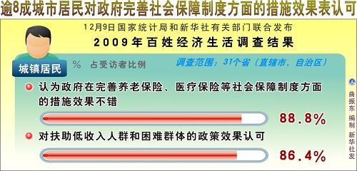 圖表:逾8成城市居民對(duì)政府完善社會(huì)保障制度方面的措施效果表認(rèn)可 新華社發(fā)