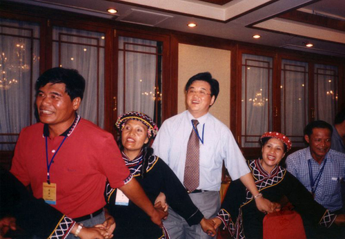 2003年受“非典”影響,兩岸交流和人員往來中斷。海南以瓊臺少數民族交流為突破口,率先啟動兩岸交流。中央領在人民大會堂接見臺灣同胞。