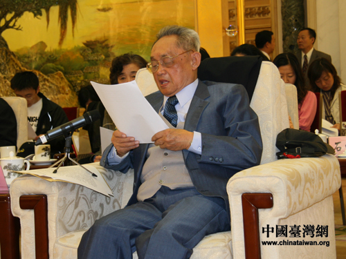 臺灣光復(fù)親歷者老臺胞黃幸先生在座談會上發(fā)言(攝影 趙穎芳)
