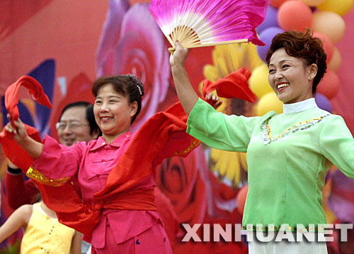當(dāng)日,“頌歌向著太陽(yáng)唱――南京群眾歡慶黨的十七大”大型群眾演唱會(huì)在南京水木秦淮廣場(chǎng)舉行。一些文藝工作者和社區(qū)群眾載歌載舞,歡慶黨的十七大勝利閉幕。 新華社記者 孫參 攝