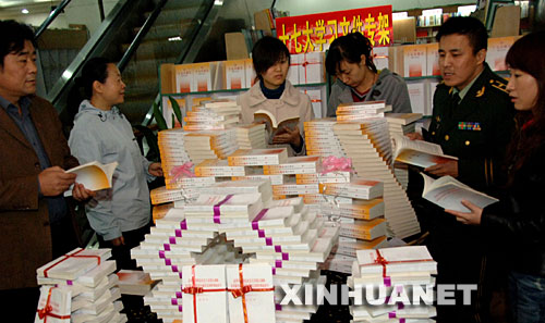 10月30日,西安讀者在“十七大學(xué)習(xí)文件專架”前選購圖書。近日,陜西省西安市新華書店設(shè)立“十七大學(xué)習(xí)文件專架”,相關(guān)圖書受到讀者歡迎。 新華社記者 丁海濤 攝