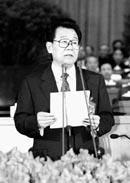 | 李瑞環(huán)主持全國政協(xié)九屆一次會議開幕大會。本報記者 徐 燁攝 |