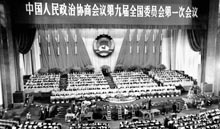 下午3 時,李瑞環(huán)宣布:中國人民政治協(xié)商會議第九屆全國委員會第一次會議開幕。全體委員起立,軍樂隊奏《中華人民共和國國歌》。