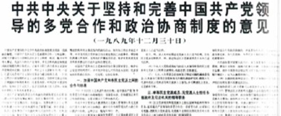 1989年12月30日,中共中央制定《中共中央關(guān)于堅(jiān)持和完善中國共產(chǎn)黨領(lǐng)導(dǎo)的多黨合作和政治協(xié)商制度的意見》,使這一制度進(jìn)一步規(guī)范化、制度化。