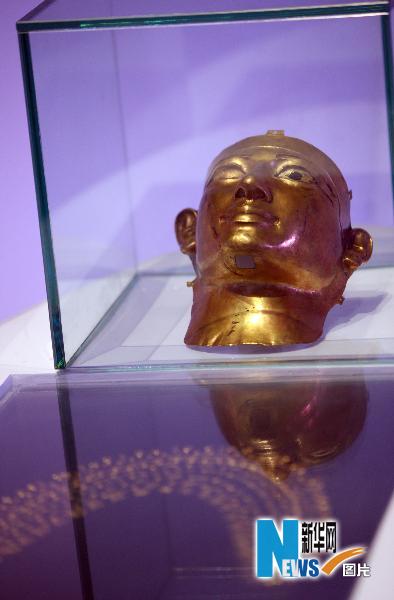 上海世博會(huì)埃及館展出的“法老舍松契二世面具”(5月15日攝)。