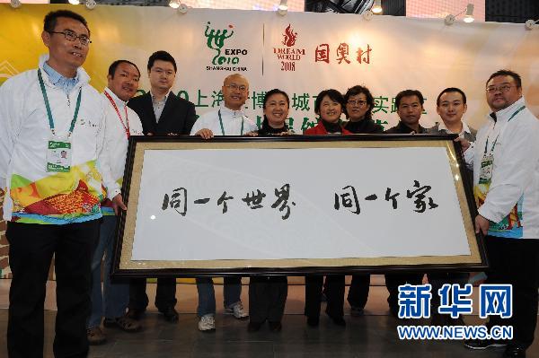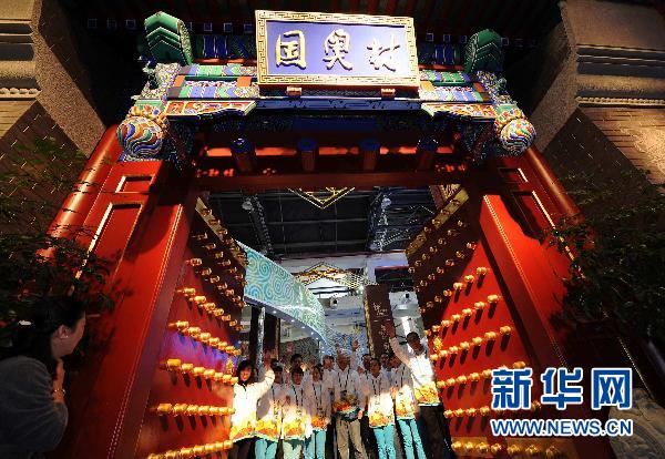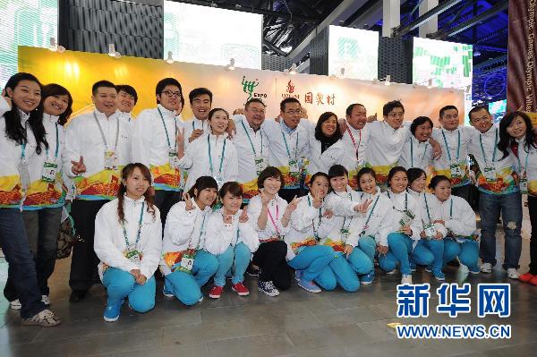 10月31日,上海世博園北京案例館“國奧村”工作人員在展館內(nèi)合影留念。