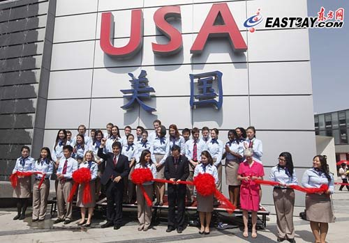 以“擁抱挑戰(zhàn)”為主題的美國館占地6000平方米,是上海世博會(huì)最大的國家館之一。去年11約16日,美國國務(wù)卿希拉里.克林頓訪問美國館工地時(shí)承諾,上海世博會(huì)上將出現(xiàn)一座精彩的美國館,她也期待著再來上海參觀宏偉的美國館!艾F(xiàn)在,這個(gè)承諾兌現(xiàn)了!遍_館儀式上,美國館總代表費(fèi)樂友、美國駐滬總領(lǐng)事康碧翠分別用英文和中文,帶領(lǐng)31位美國大學(xué)生親善大使宣誓,承諾用微笑、禮貌和學(xué)識(shí)為游客熱情服務(wù),充分享受學(xué)習(xí)其他國家文化的機(jī)會(huì)。