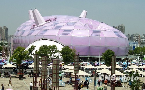 上海世博會日本館愛稱“紫蠶島”,它的建筑理念是“像生命體一樣會呼吸的環(huán)保建筑”,展館外部覆蓋一層利用太陽能發(fā)電的超輕“膜結(jié)構(gòu)”。 中新社發(fā) 周東潮 攝