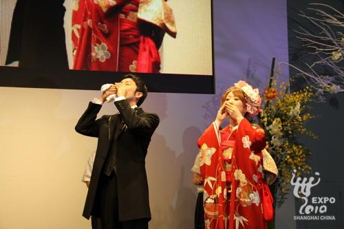 不久前,法國圖爾市在世博會上舉行了浪漫的法國婚典;3日下午,作為橫濱周活動之一,世博園又迎來了一場具有濃郁東方氣息的傳統(tǒng)日式婚禮。