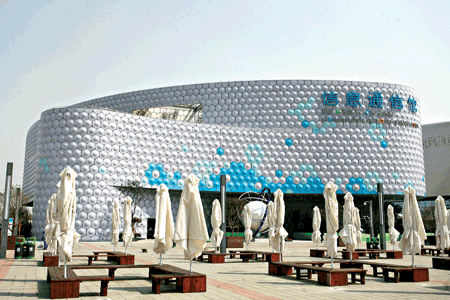由中國移動與中國電信聯合建設的信息通信館坐落于浦西園區(qū),遠望宛若一座雪域城堡。其外墻通體采用LED覆蓋,成為世博會為數不多的可以整體變換“外衣”的展館之一。白天,由6400塊蜂窩狀板材構成的外觀藍白交替,無轉角設計形成流暢的線條,充滿簡潔之美。當華燈初上,夜色中的信息通信館忽然“華麗轉身”,其LED外墻整體發(fā)光,且色彩時刻都在變化,仿佛披上了一襲七彩華服,流光溢彩之間與浦江夜景相映生輝。