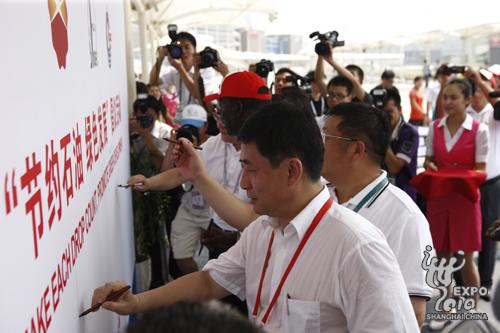 上海世博局局長(zhǎng)洪浩出席了石油館特別活動(dòng)日儀式,他在致辭中歡迎各方嘉賓來到上海世博會(huì),并對(duì)中國(guó)石油、中國(guó)石化、中國(guó)海油三家石油公司舉辦倡議活動(dòng)表示祝賀。